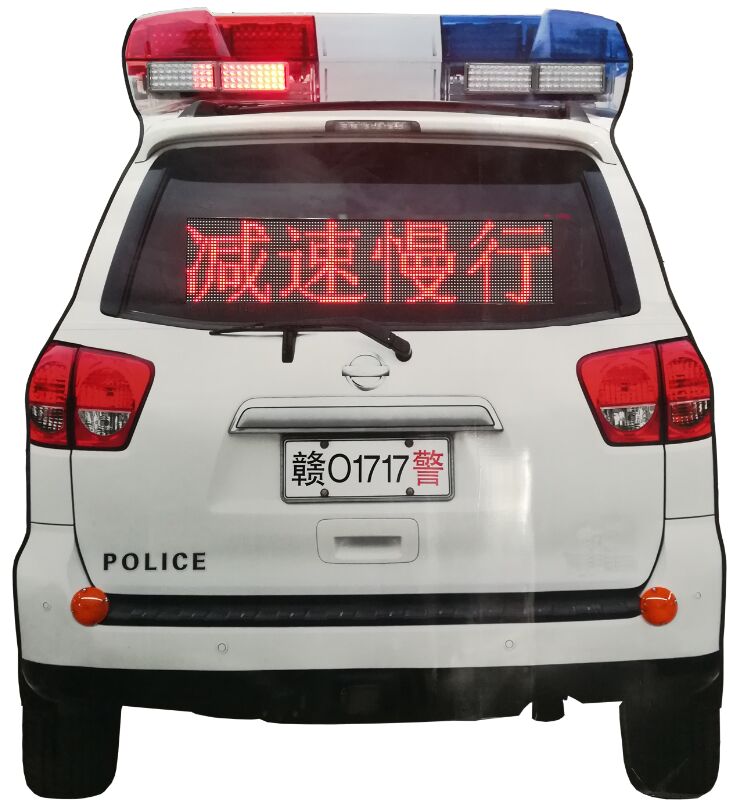 這款“仿真警車警示裝置”,是參照通用警車后背視覺圖樣,采用等比例尺寸噴繪圖案制作成面板,并按照實物的現(xiàn)狀布局,還配置了“后窗字幕”、“剎車燈”、“車頂警燈”等LED發(fā)光裝置,因為通常設(shè)置在取電不方便的偏遠路段,所有設(shè)計采用太陽能供電,不仔細看就像真警車一樣,特別是在動態(tài)行駛狀態(tài)中,難怪司機們都以為遇到巡邏警車了。