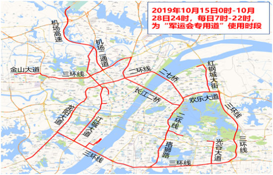 “軍運(yùn)會”交通管理措施自2019年10月15日0時起實施,至2019年10月28日24時止。