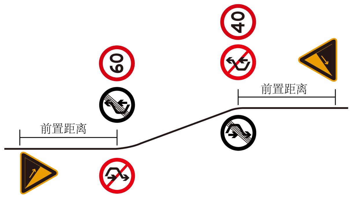 2、上、下陡坡路段起點(diǎn)應(yīng)設(shè)置禁止超車標(biāo)志,終點(diǎn)設(shè)置解除禁止超車標(biāo)志。