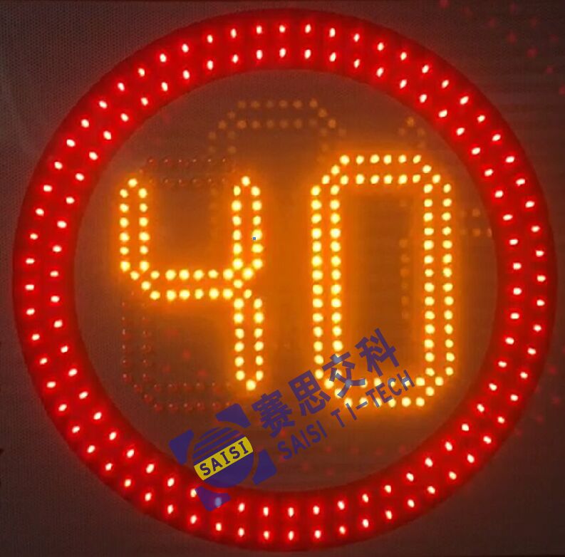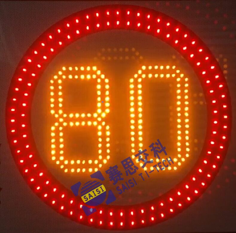 2、工藝說(shuō)明:在限速標(biāo)志版面紅圈中嵌入密集LED點(diǎn)陣,并布設(shè)“8”字?jǐn)?shù)碼筆畫(huà)板,通過(guò)手動(dòng)激發(fā)式控制方式,根據(jù)路段管制需求,動(dòng)態(tài)設(shè)置限速值。