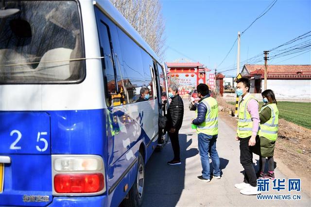 2月22日,復(fù)工直通車在山東濟(jì)南歷城區(qū)李官莊村接載返崗復(fù)工村民。 新華社記者 朱崢 攝