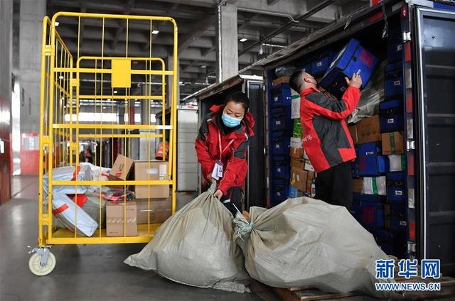 在陜西西安,京東物流西北區(qū)西安傳站車隊(duì)貨車司機(jī)梁紅娟(左)與同事一起準(zhǔn)備將貨物裝車(3月6日攝)。 新華社記者 劉瀟 攝