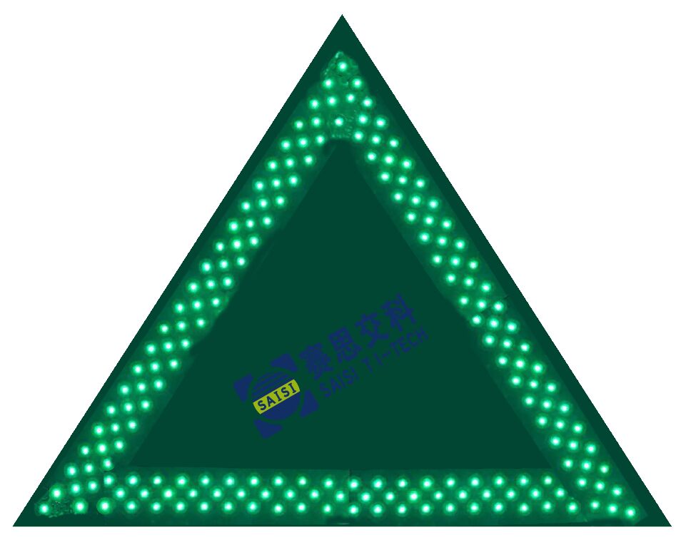 技術(shù)參數(shù):三角2400mm;綠底、無圖案、綠色LED管;LED點(diǎn)陣式主動(dòng)發(fā)光標(biāo)志;太陽能供電或外接市電。