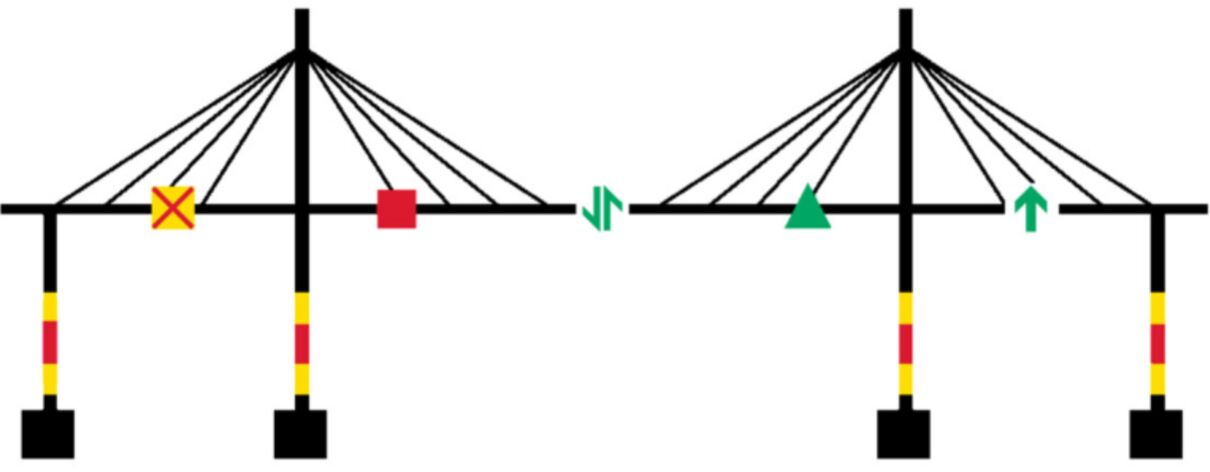 在國標(biāo)《中國海區(qū)可航行水域橋梁助航標(biāo)志》(GB24118-2009)中列出了兩種類型的通航橋孔:雙向通航橋孔和單向通航橋孔,并根據(jù)不同的通航橋孔給出了對(duì)應(yīng)的設(shè)置標(biāo)準(zhǔn)。