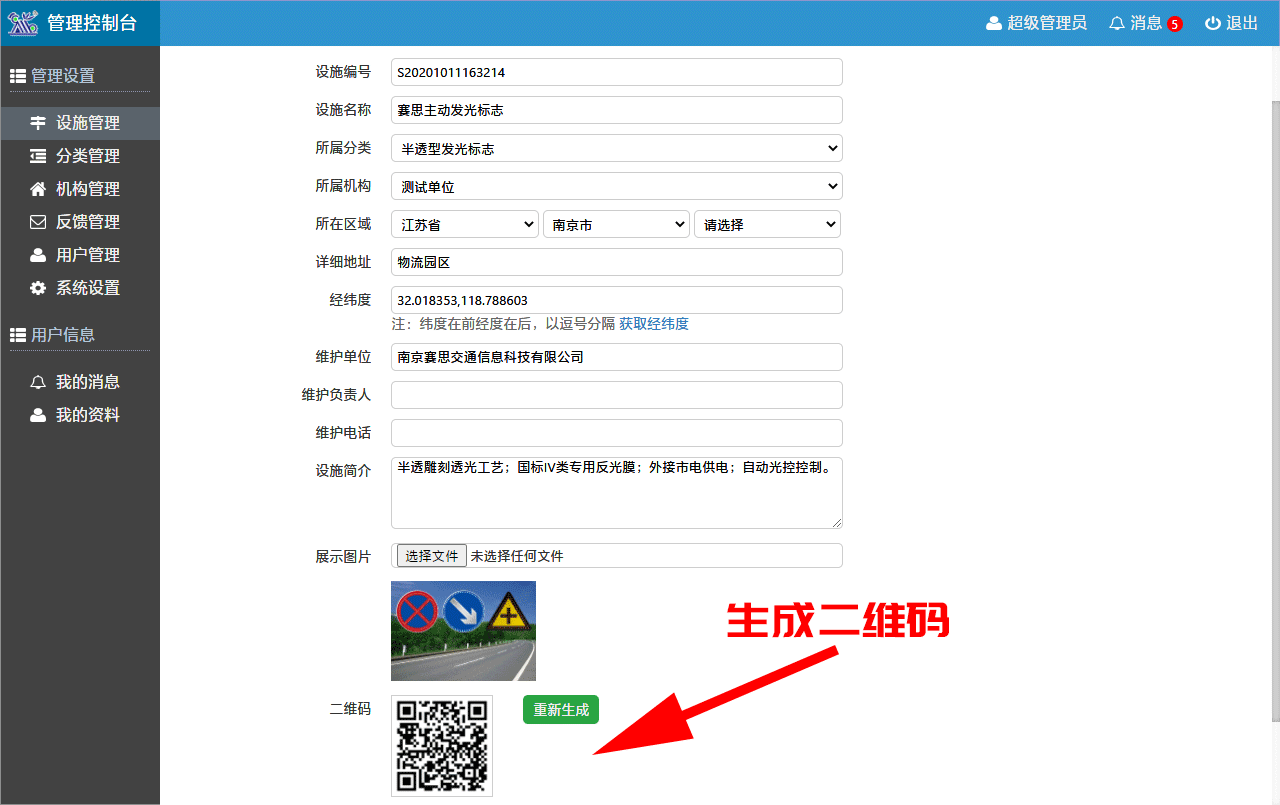 設(shè)施設(shè)備詳情,可生成二維碼