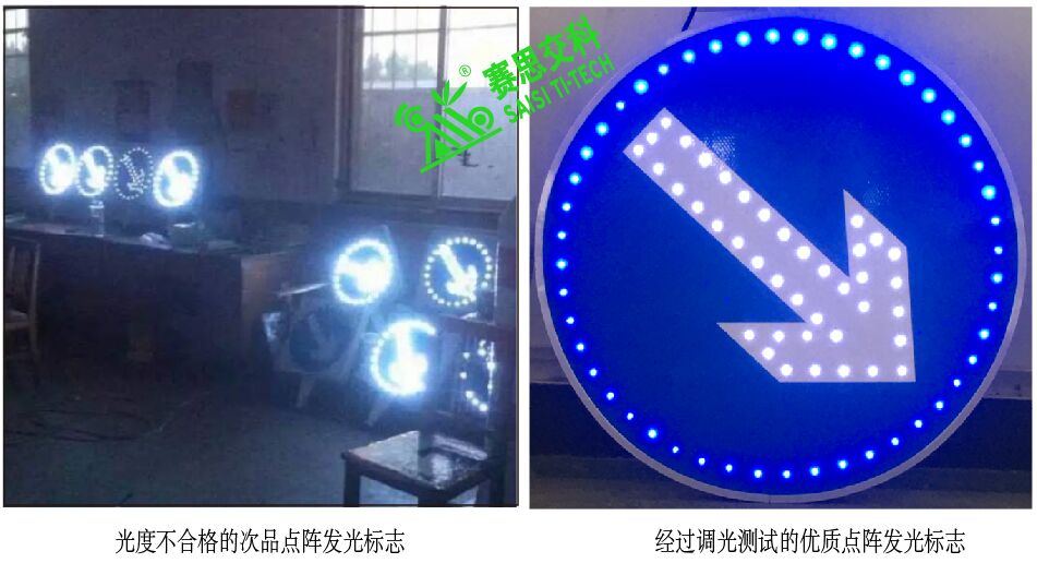 不僅是非生產(chǎn)業(yè)內(nèi)的客戶,甚至有些從事發(fā)光標(biāo)志生產(chǎn)不久的廠家,都想當(dāng)然地認(rèn)為“主動發(fā)光標(biāo)志不就是能發(fā)光的標(biāo)志嘛!給標(biāo)志裝上LED發(fā)光管就是發(fā)光標(biāo)志!”,而我要說的是:“led發(fā)光管+標(biāo)志牌 ≠ 主動發(fā)光標(biāo)志;能發(fā)光的標(biāo)志,不一定算是主動發(fā)光標(biāo)志??!”,主動發(fā)光標(biāo)志作為重要的交通語言發(fā)光載體,其光源特性,不同于照明功能的路燈,也不同于警示功能的爆閃燈,其屬于光信息功能范疇,其光強(qiáng)要在人眼視認(rèn)的舒適區(qū)間內(nèi),既不能過分追求太亮而刺眼,也不能為節(jié)省能源損耗,而過于偏暗,要達(dá)到版面亮度舒適,讓駕駛員人眼舒適地對光信息進(jìn)行讀取、辨認(rèn)、識別、認(rèn)知,其需要根據(jù)具體版面的內(nèi)容特征,和安裝位置的環(huán)境照顧,進(jìn)行調(diào)光測試給出系列值,并提供動態(tài)自動修正的功能。不是毫無依據(jù),很隨意地給標(biāo)志安裝上LED發(fā)光管,就可以提供給交通工程應(yīng)用。