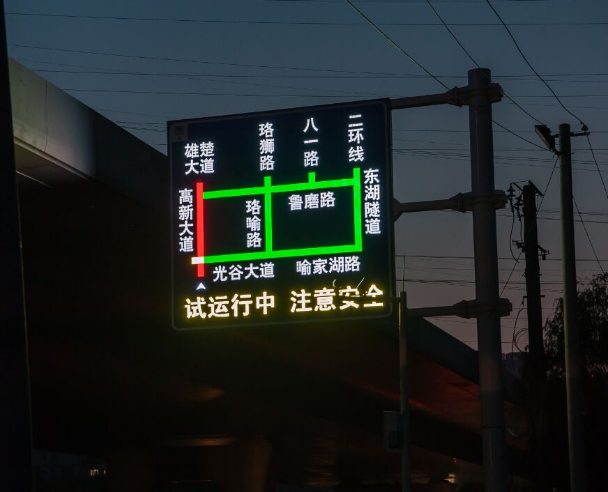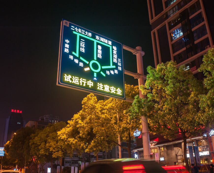 2、標志版面整體采用主動發(fā)光技術(shù),路網(wǎng)部分嵌入三基色LED光帶誘導(dǎo)屏體。