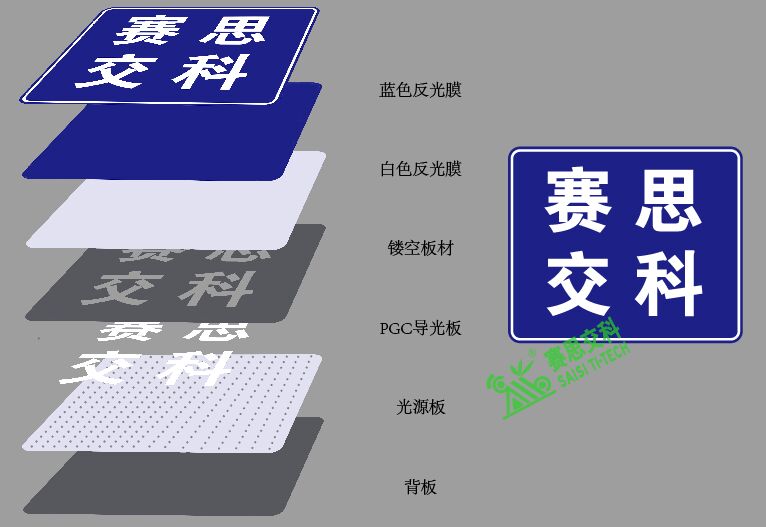 背透式主動發(fā)光標(biāo)志,是一種內(nèi)置照明標(biāo)志,即通過內(nèi)置光源照射,光源從標(biāo)志面版層的后背穿過(pass through),增強標(biāo)志版面關(guān)鍵信息的亮度,來提升標(biāo)志視認(rèn)的一種發(fā)光標(biāo)志制作工藝。背透式發(fā)光標(biāo)志,按其面板層的發(fā)光面積占比大小,又分為“半透型”和“全透型”兩款。半透型背透式主動發(fā)光標(biāo)志,其面板僅增強了關(guān)鍵信息內(nèi)容的發(fā)光,標(biāo)志底板不發(fā)光,僅保留了逆反射功能,其優(yōu)點在于標(biāo)志視認(rèn)的對比度強;全透型背透式主動發(fā)光標(biāo)志,其整個面板層都發(fā)光,也同時保留不發(fā)光時的逆反射功能,其優(yōu)點在于標(biāo)志整體的亮化效果更醒目。