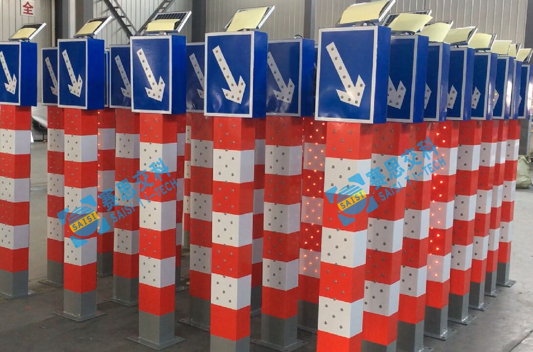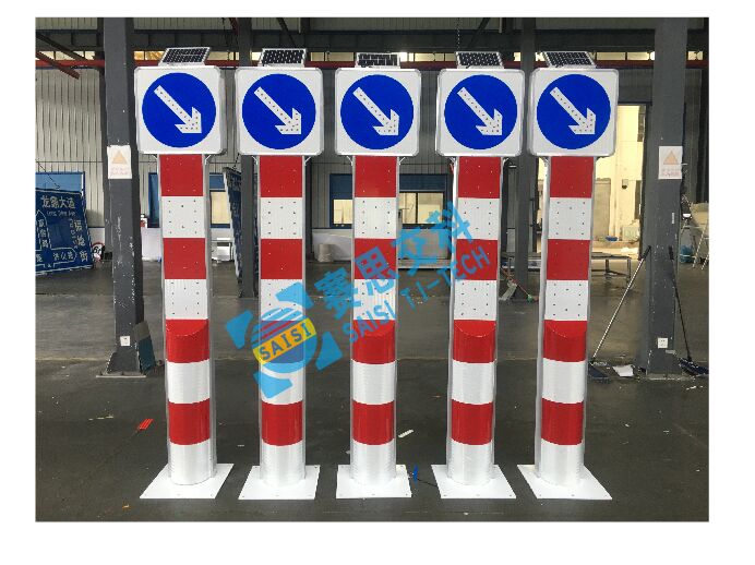 太陽(yáng)能發(fā)光警示柱(中央隔離右下行指示)