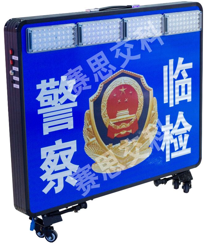 5、警示屏下方設(shè)置可起、合的支撐架,達(dá)到獨(dú)立支撐與回收功能,上方設(shè)有提攜把手,方便執(zhí)勤攜帶。